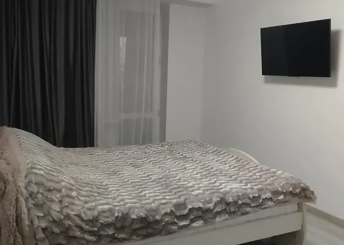 A kitchen with a microwave, tea and coffee making equipment, and a refrigerator is among the self-catering amenities provided. European dishes are served in the grill bar MuzCafe Karaoke, set 400 metres away. Strada Nicolae Titulescu bus stop lies only a short distance from the apartment.